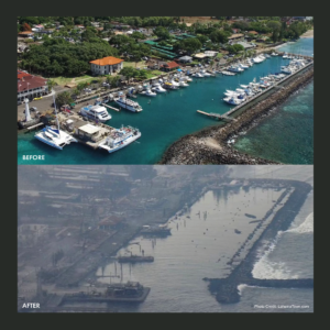 With daylight came news and pictures of the destruction, things no one ever wants to see or hear. People fled into the ocean to escape the flames. Our majestic Banyan tree blackened. The whole town of Lahaina flattened. Hundreds of homes were destroyed. Missing loved ones and pets. And the question changed from “Are you OK,” to “What can I do?” The answer is, please do something.